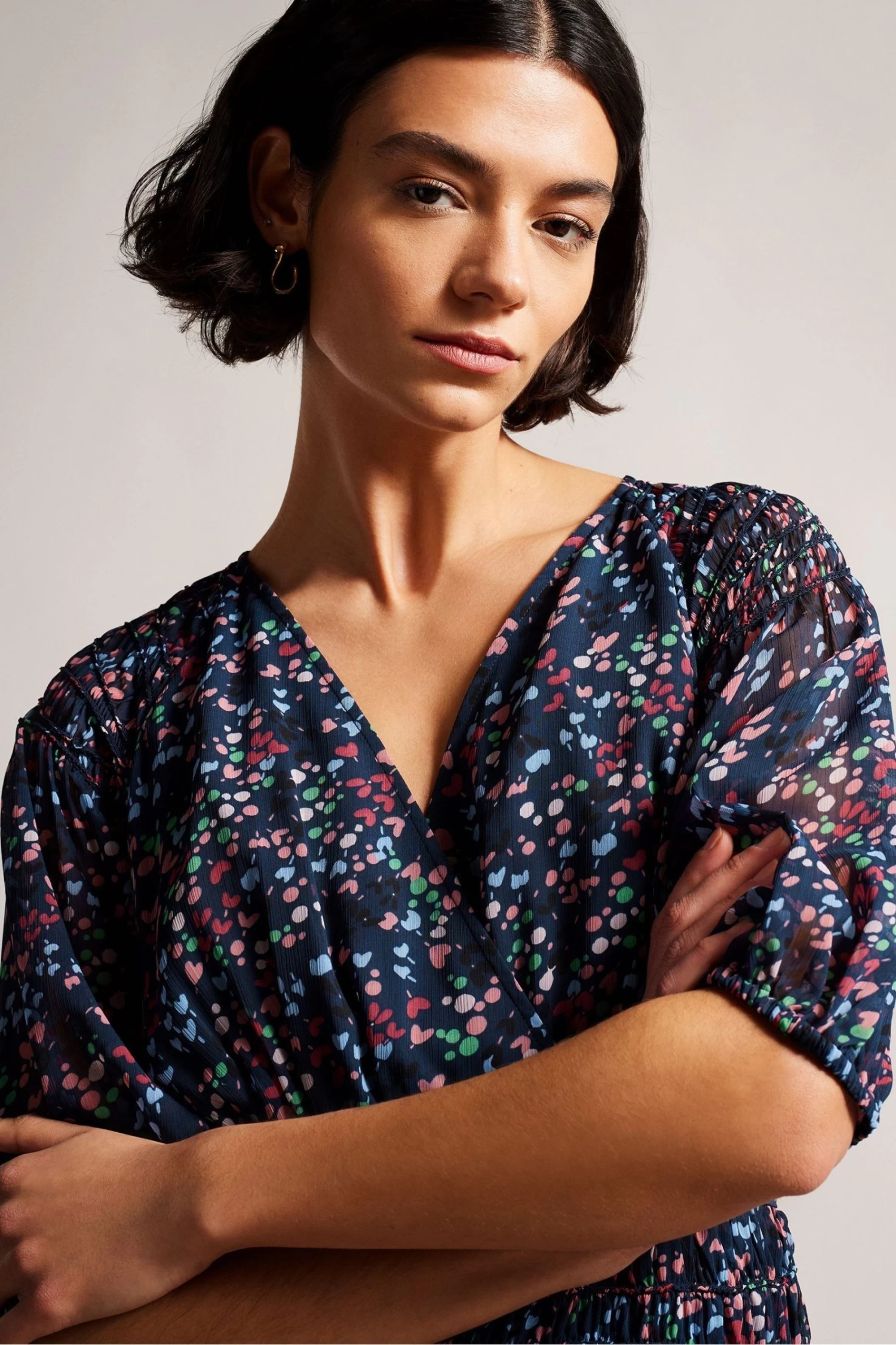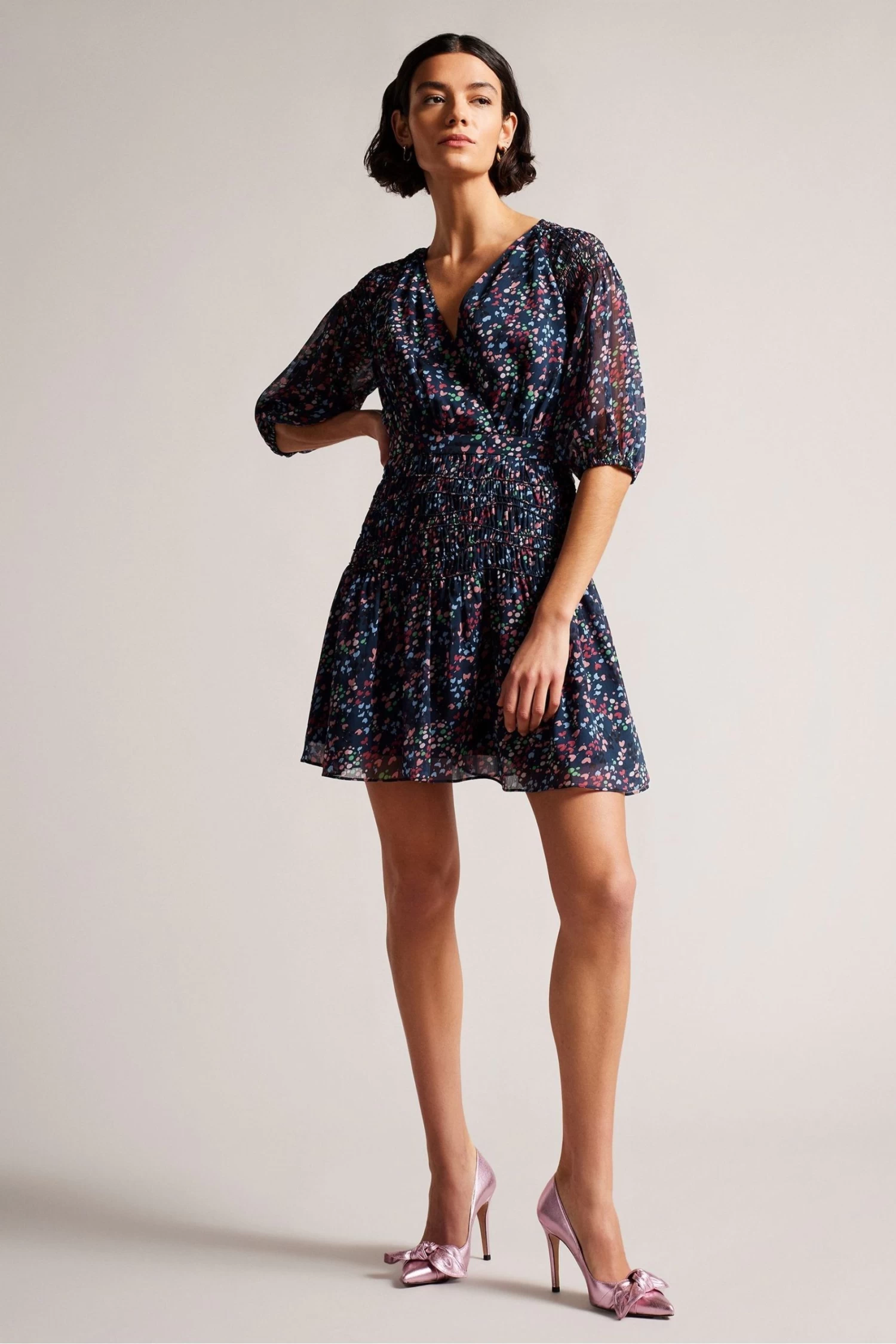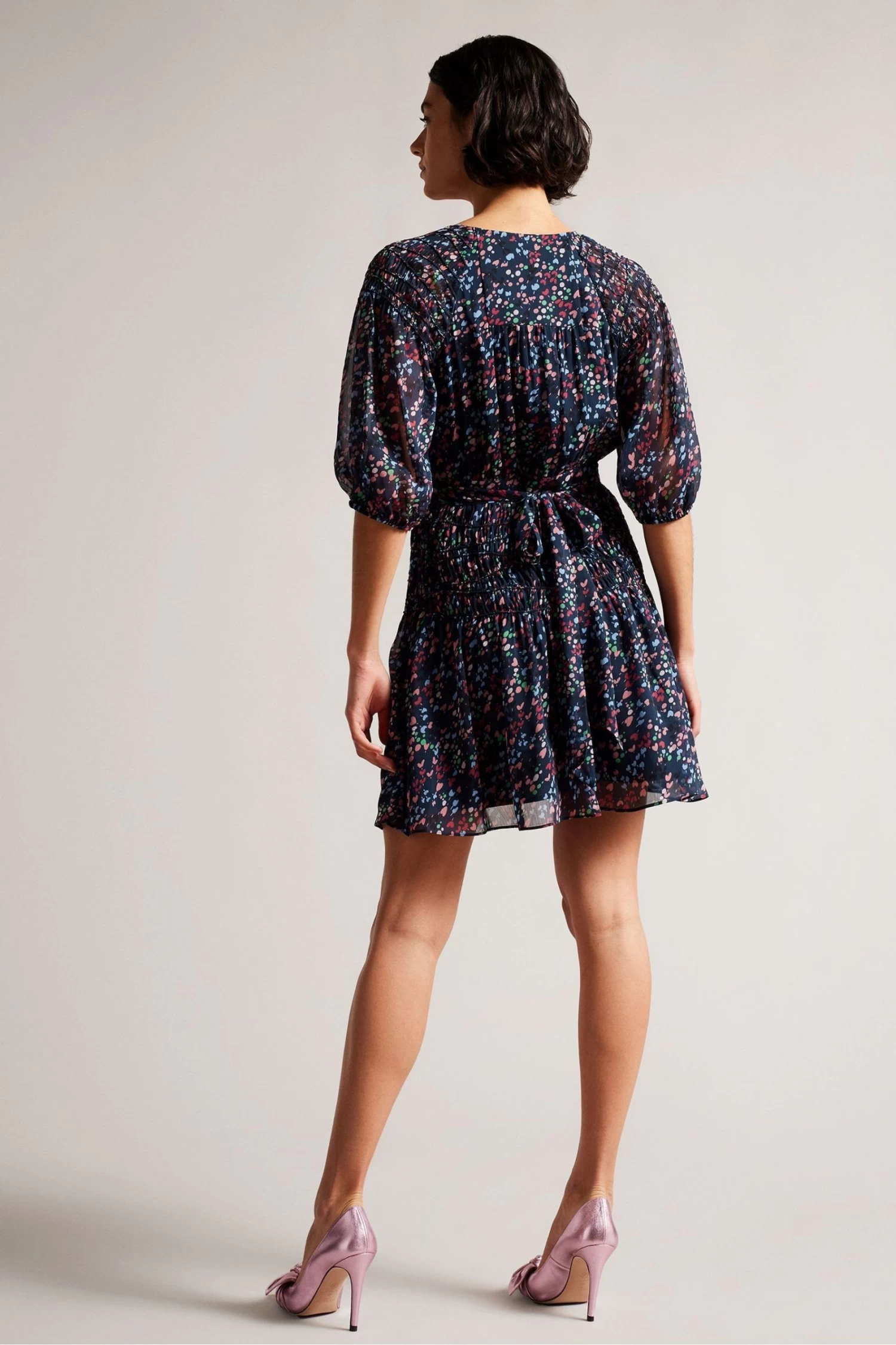 Ted Baker Blue Casadee Dk Navy Smock Panel Wrap Mini Dress