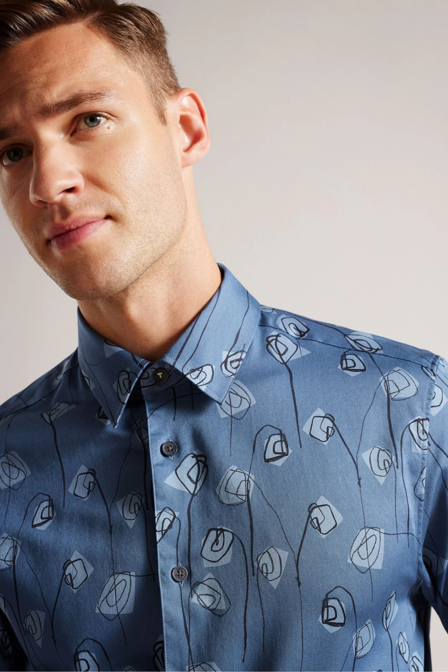 Ted Baker Blue Frith Long Sleeve Flower Print Shirt