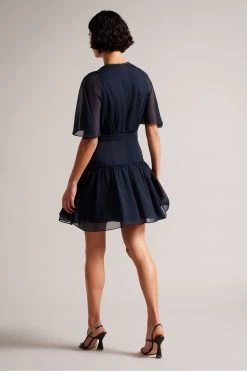 Ted Baker Blue Giggie Fit And Flare Tiered Mini Dress