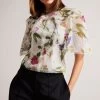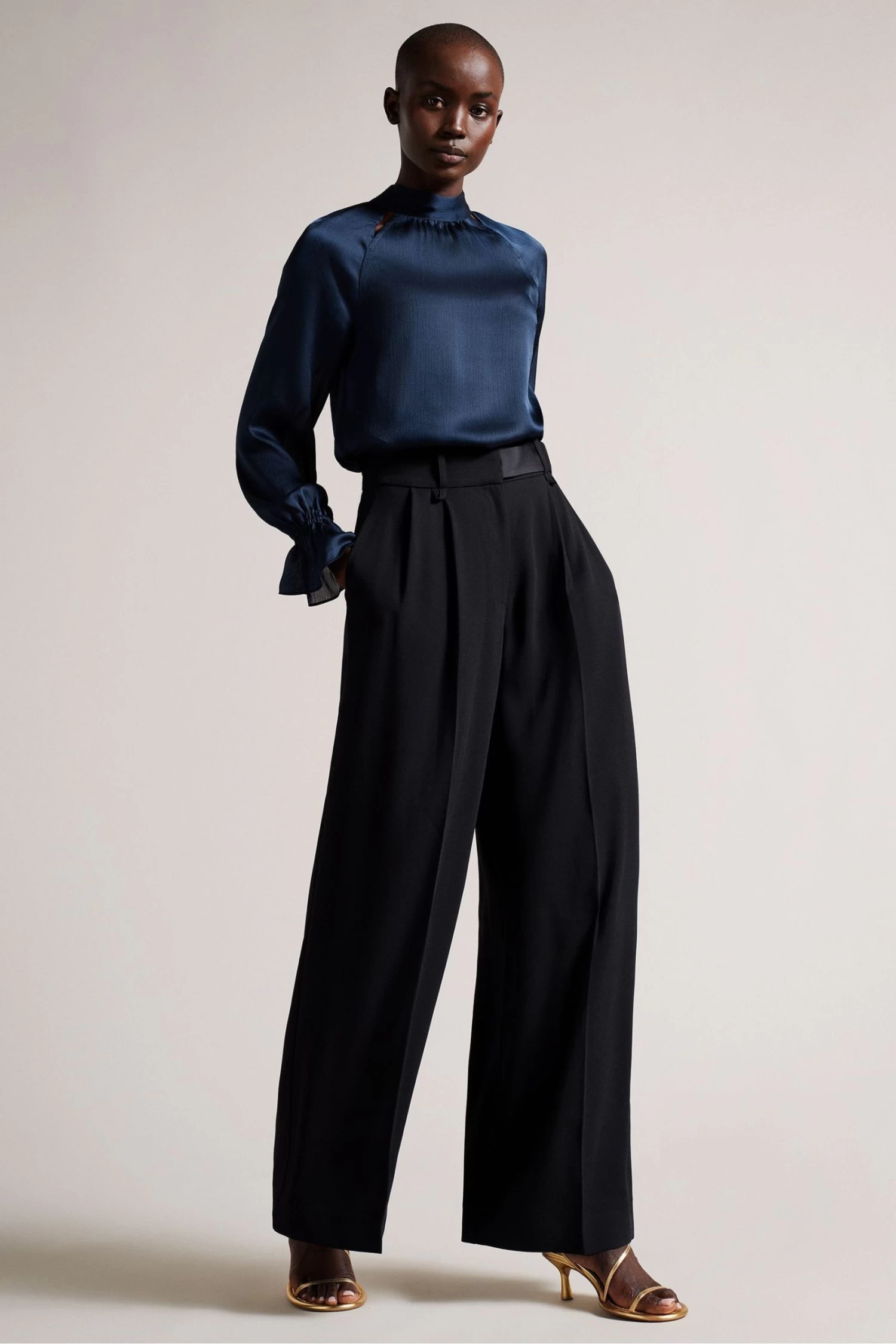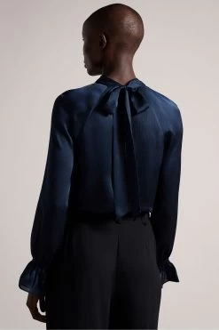 Ted Baker Blue Joanha High Neck Long Sleeve Blouse With Cut-Out
