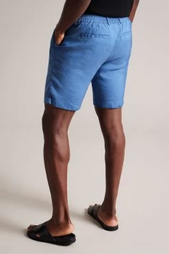 Ted Baker Blue Leder Linen Blend Half Elasticated Shorts