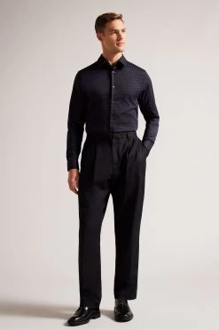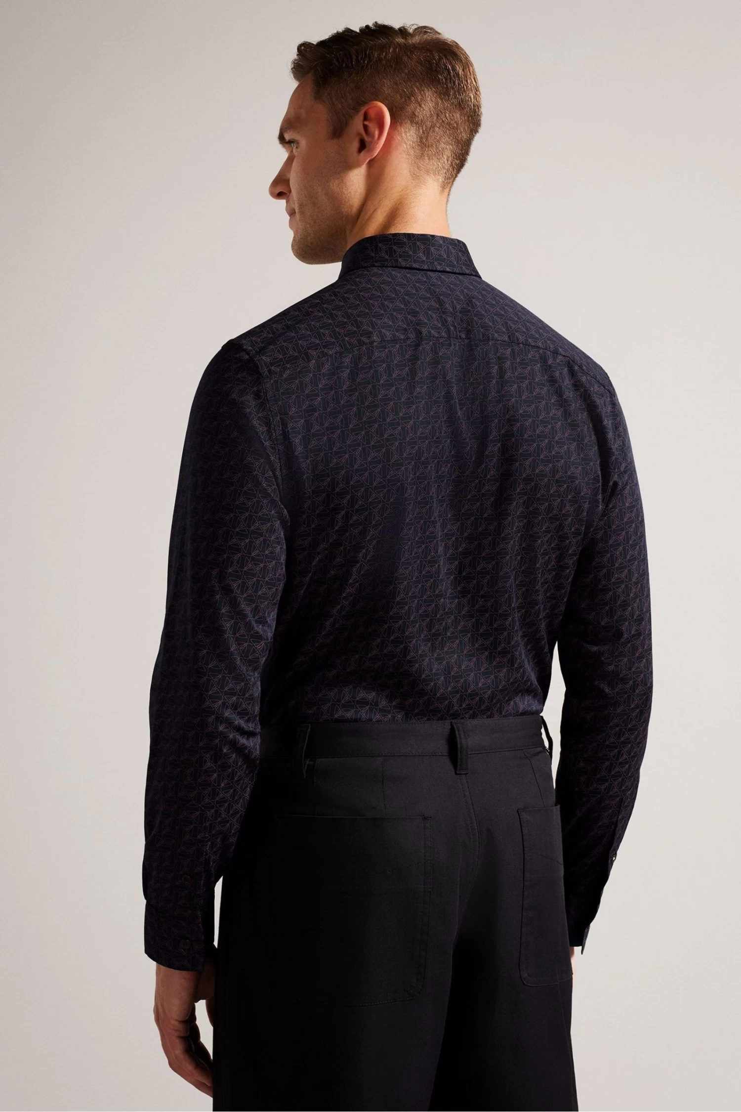 Ted Baker Blue Matlock Long Sleeve Moth Geo Print Shirt