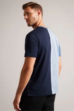 Ted Baker Blue Ramin Short Sleeved Vertical Colour Block T-Shirt