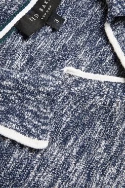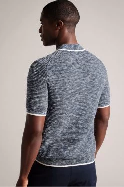 Ted Baker Blue Regular Planter Marl Open Collar Polo Shirt