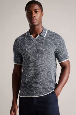 Ted Baker Blue Regular Planter Marl Open Collar Polo Shirt