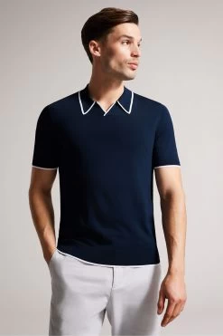 Ted Baker Blue Stortfo Short Sleeved Rayon Open Neck Polo Shirt