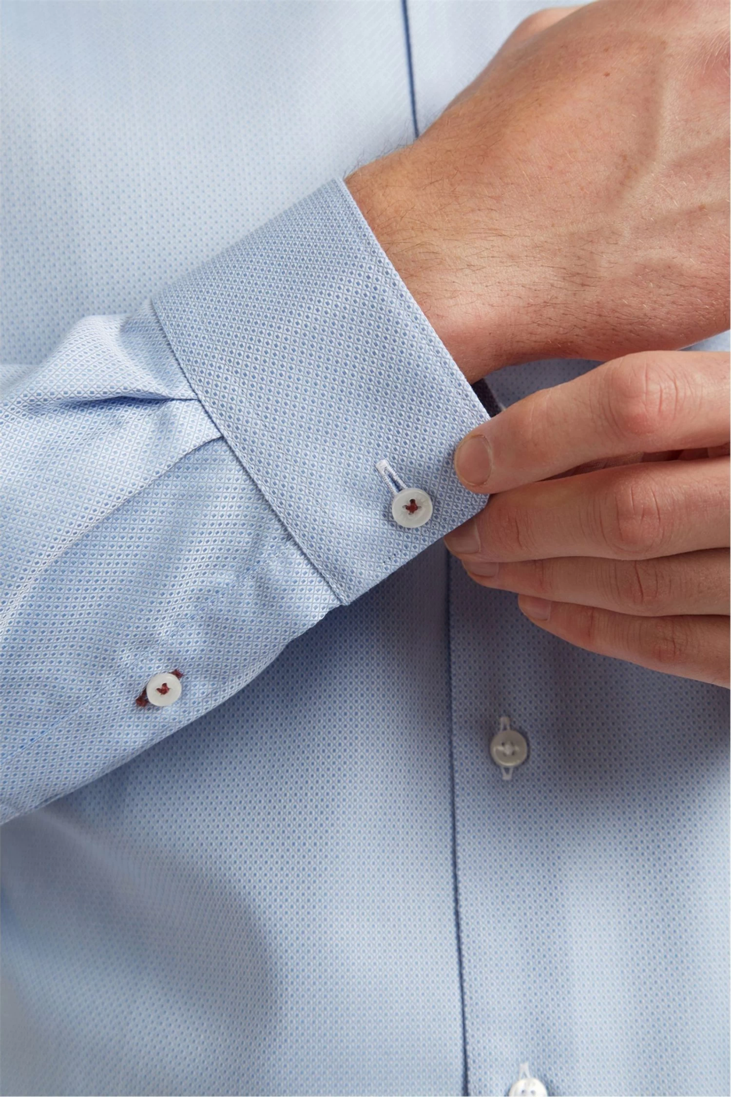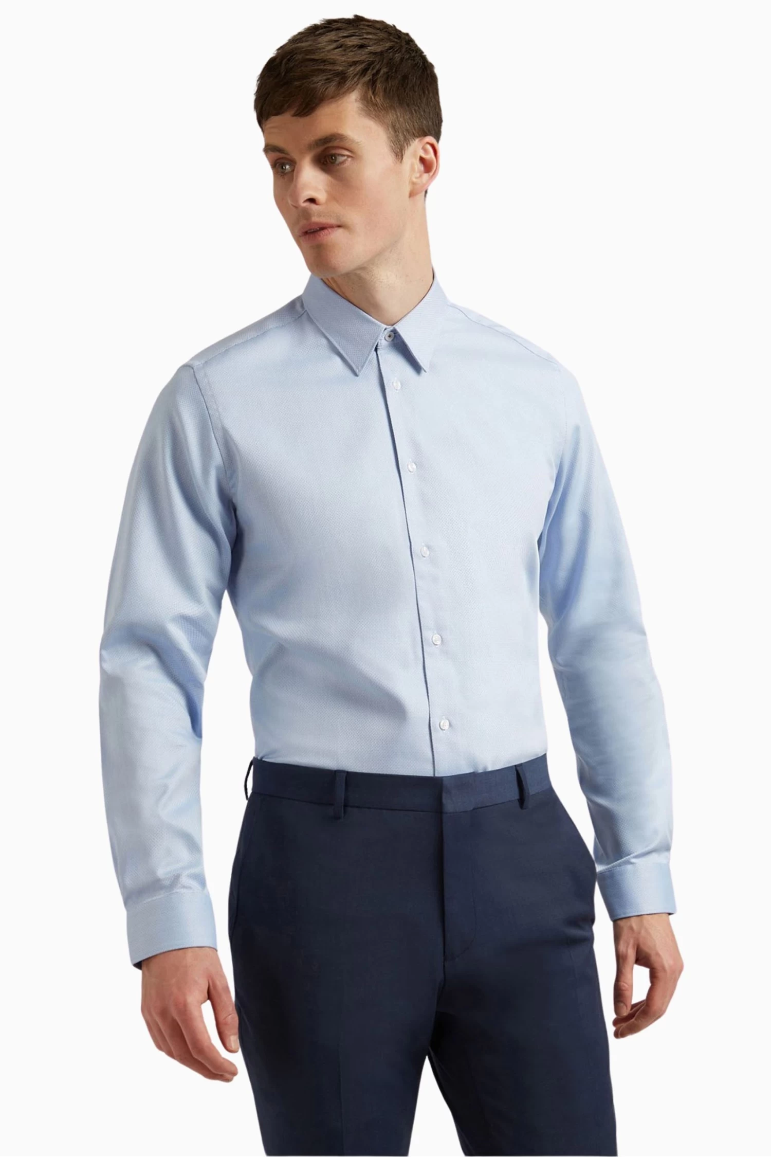 Need a new shirt? Look no further than this one by Ted Baker. Offering up a 100% cotton blue textured design, this slim-fit shirt will be the perfect choice to pair with your suit for a refined look.