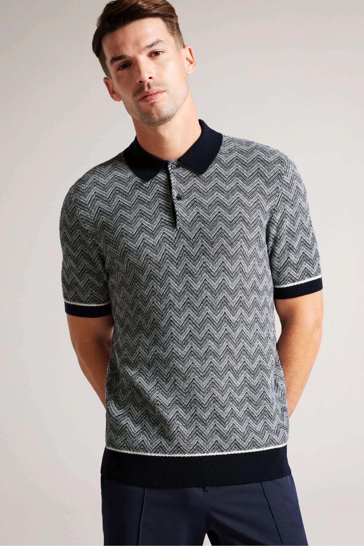 Ted Baker Blue Waldun Short Sleeve Zig Zag Stitched Polo