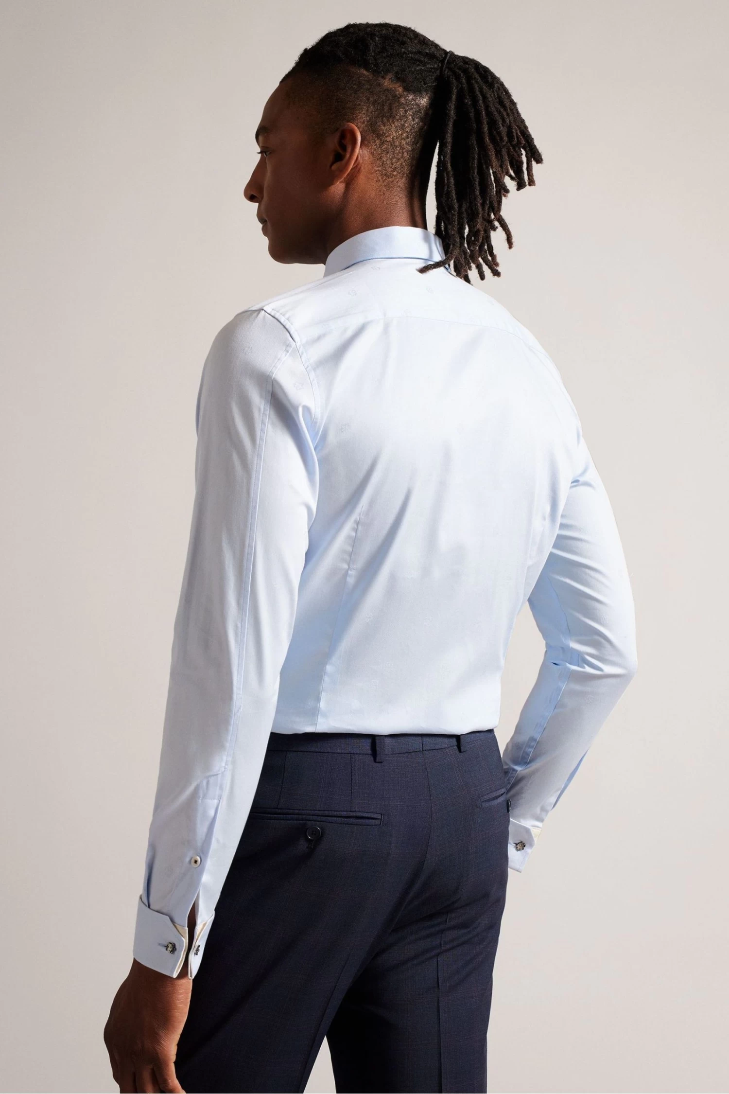 Ted Baker Blue Wragby Long Sleeved Tonal Magnolia Jacquard Shirt