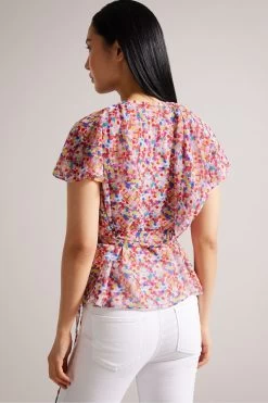 Ted Baker Brrooke Wrap White Top With Circular Cut Sleeve