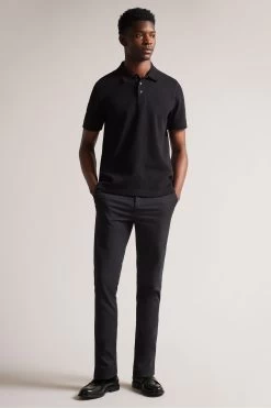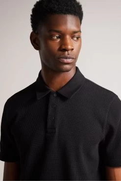 Ted Baker Bute Short Sleeved Regular Fit Textured Black Polo Shirt