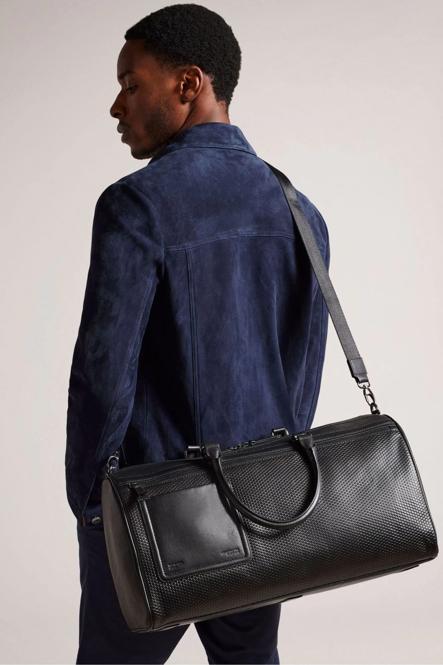 The ultimate in travel accessories, the sleek CANVAY holdall is roomy enough to pack your laptop and accessories for a weekend away. The textured leather panels add sophistication and the adjustable shoulder strap ensures comfortable carrying. By purchasing this product, you are supporting responsible leather manufacturing through the Leather Working Group. H: 26cm.