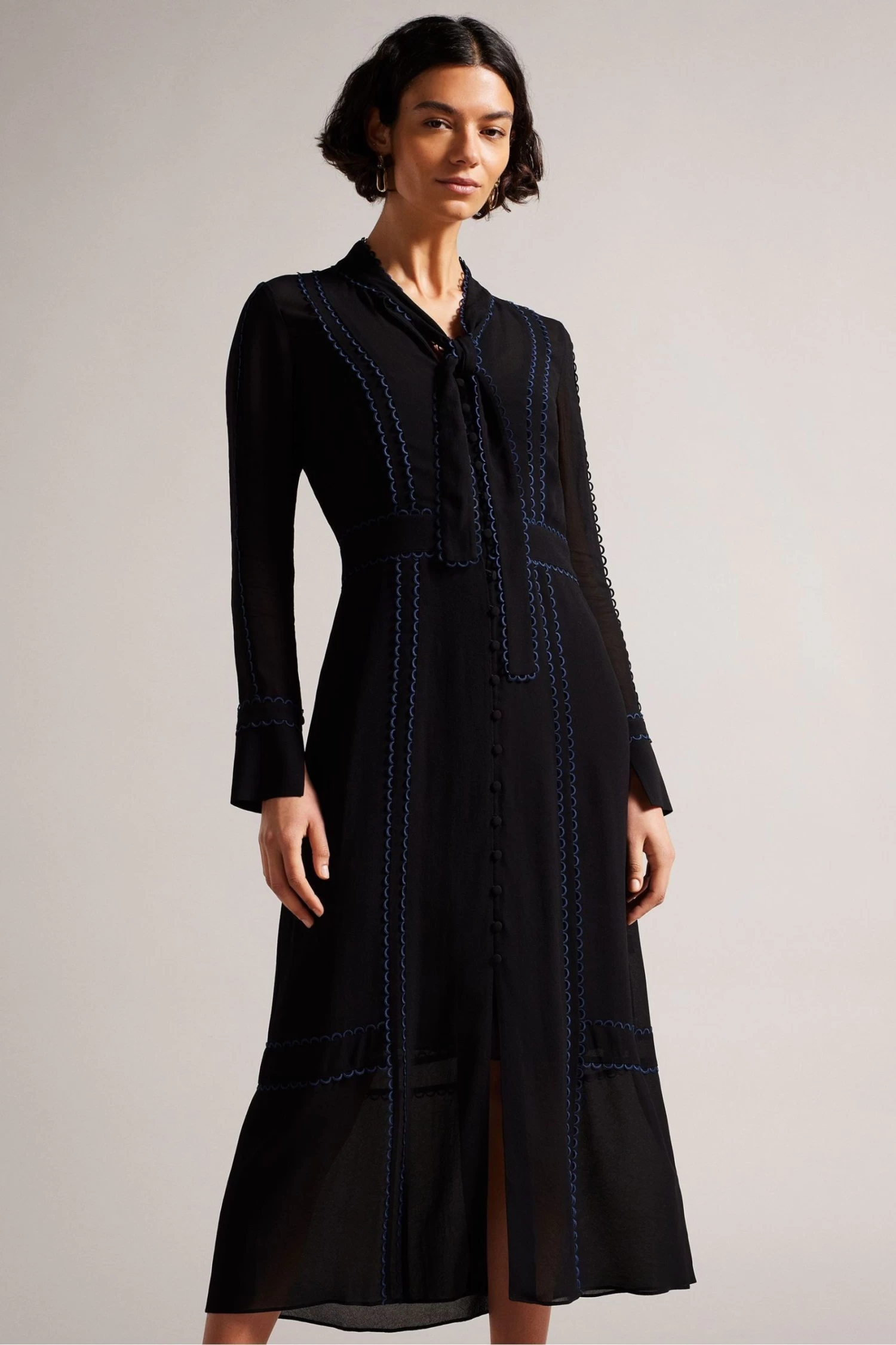 Ted Baker Claiirr Black Button Through Midi Shirt Dress