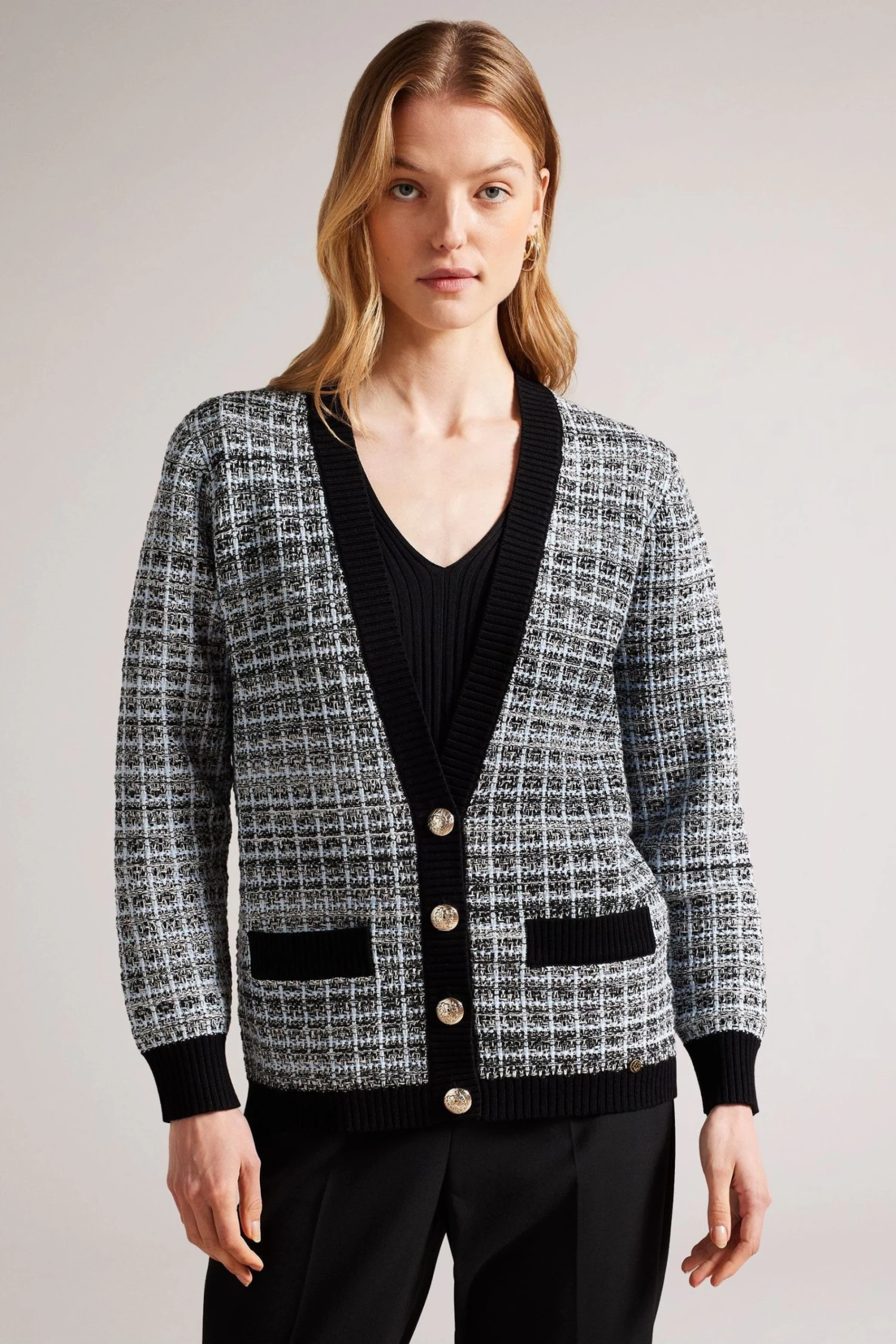 Ted Baker Cream Carmein Check Easy Fit Cardigan