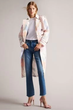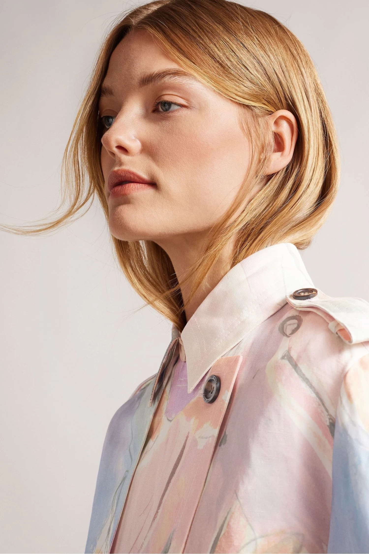 Ted Baker Cream Myiah Printed Linen Trench Coat