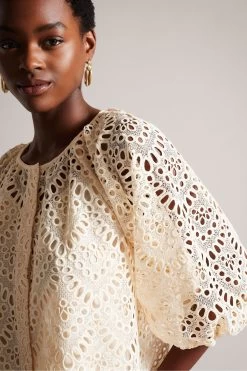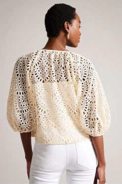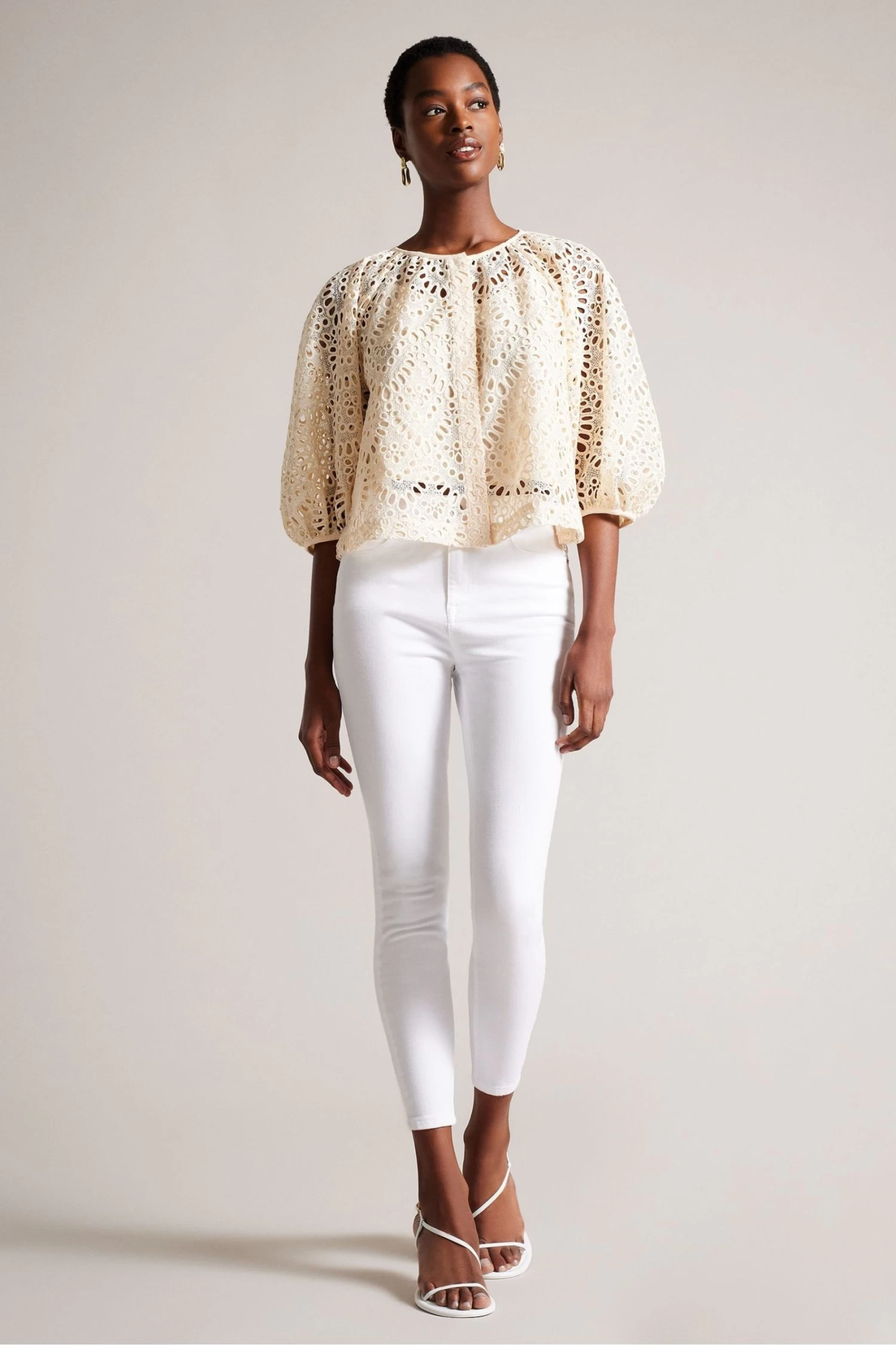 Ted Baker Elaraa Crochet Puff Sleeve White Blouse