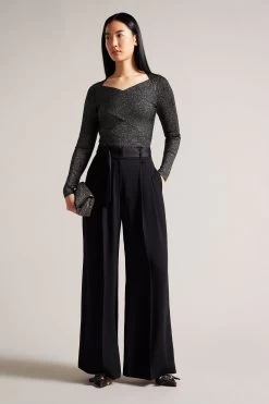 Ted Baker Eloisy Slim Fit Crossover Knit Black Top