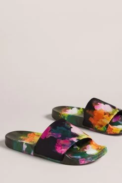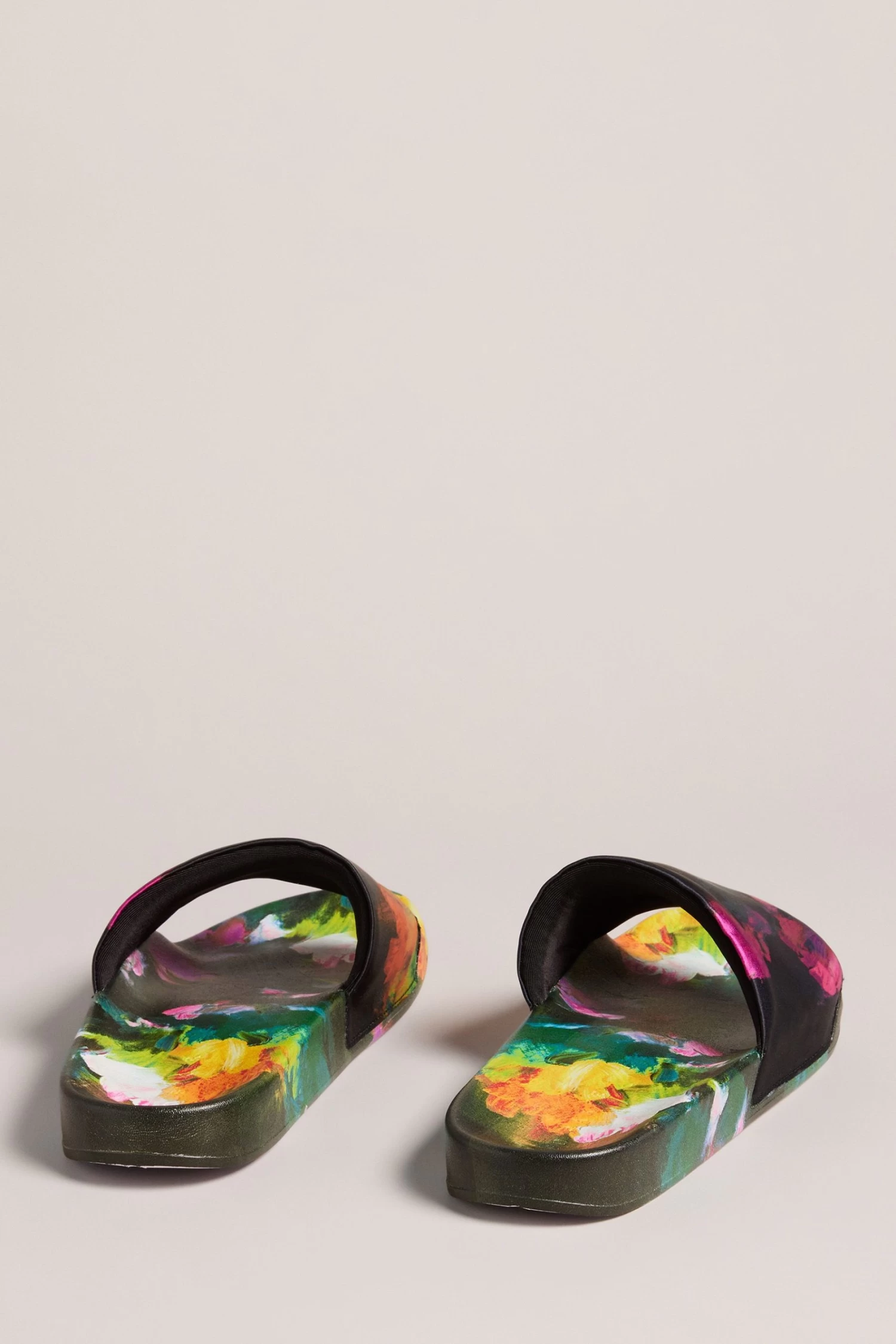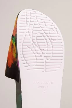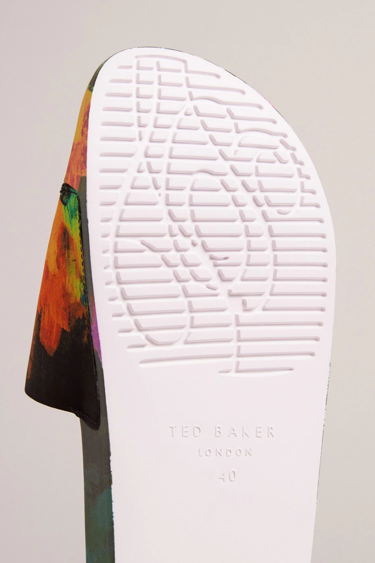 The style and comfort of sliders meets our gorgeous art print in EMMZA. Sleek and easy-going, these shoes feature a wide toe strap that allows you to slip them on and off with ease.