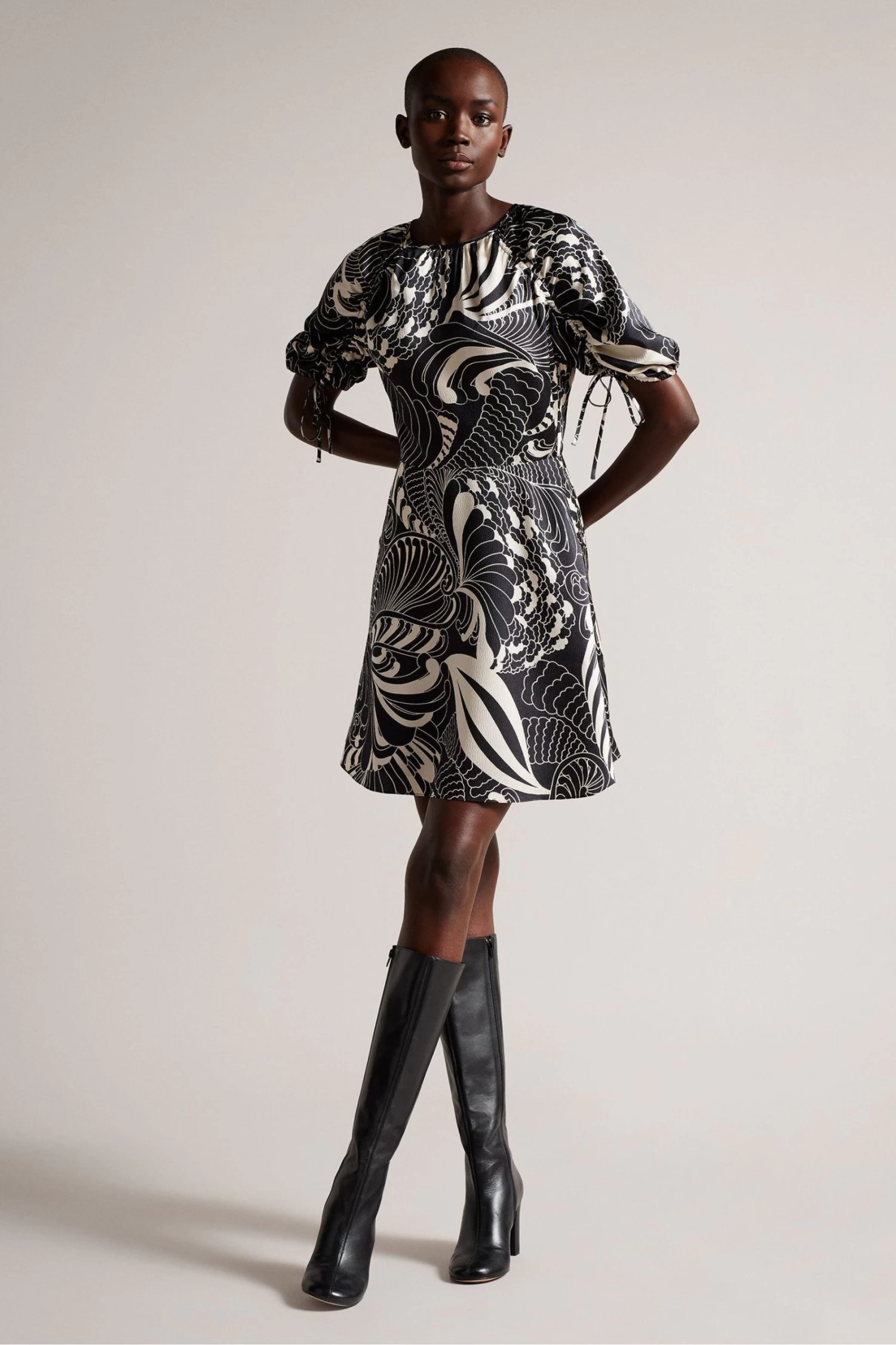 Ted Baker Faridda Black Printed Mini Dress With Puff Sleeves