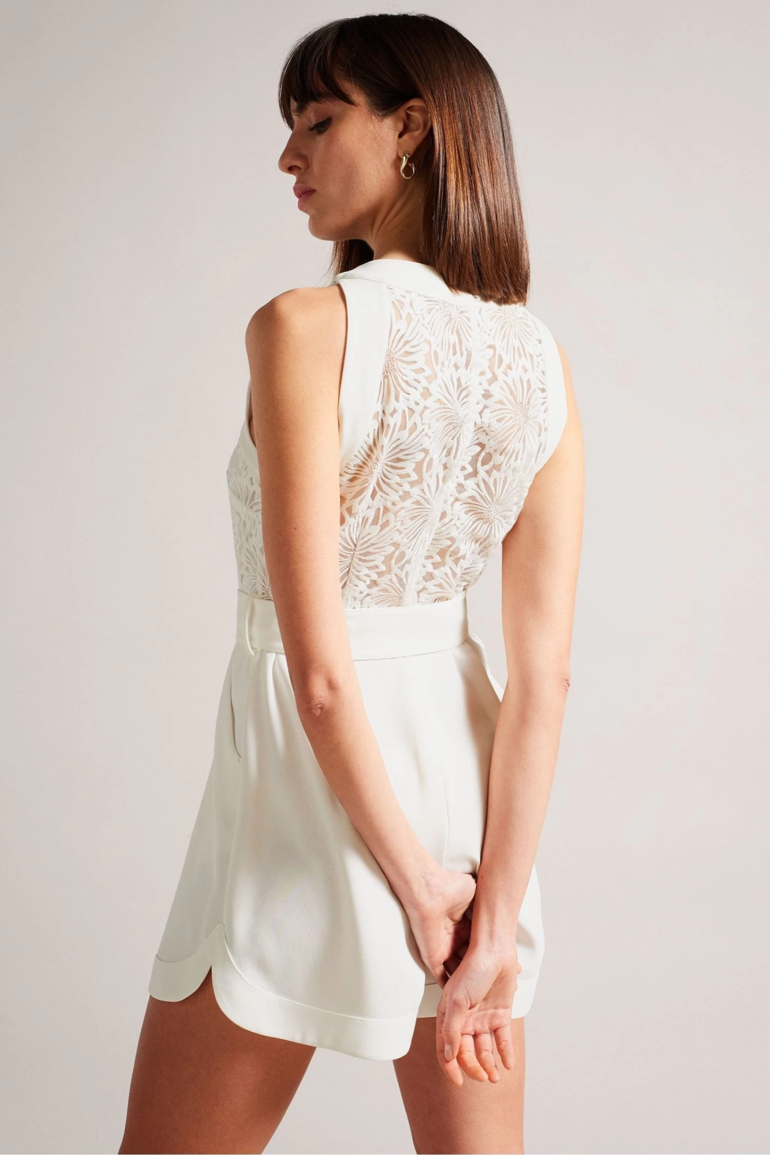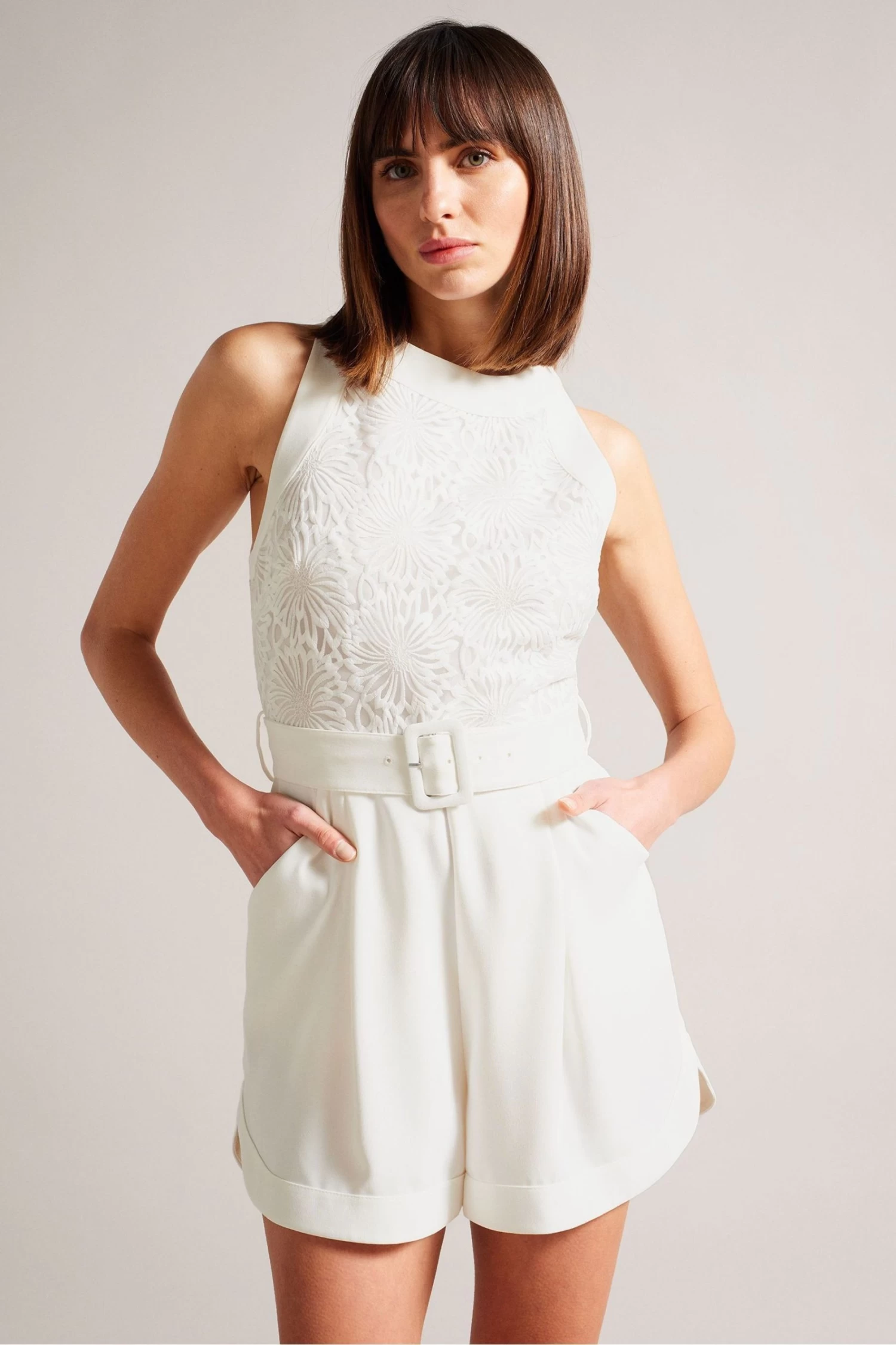 Ted Baker Finliee White Sleeveless Belted Playsuit