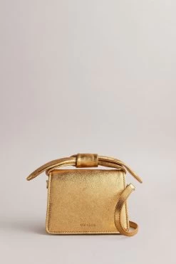 Ted Baker Gold Niasini Bow Detail Metallic Xbody Bag