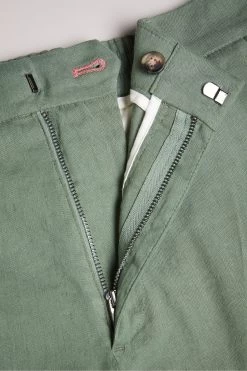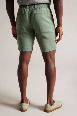 Ted Baker Green Leder Linen Blend Half Elasticated Shorts