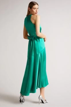Ted Baker Green Mmilly Mid High Low Halter Dress With Integral Tie