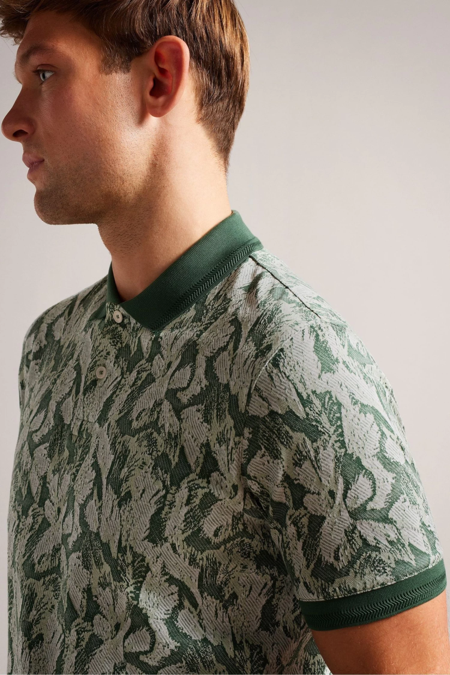 Ted Baker Green Plasta Short Sleeved Regular Fit Floral Polo Shirt