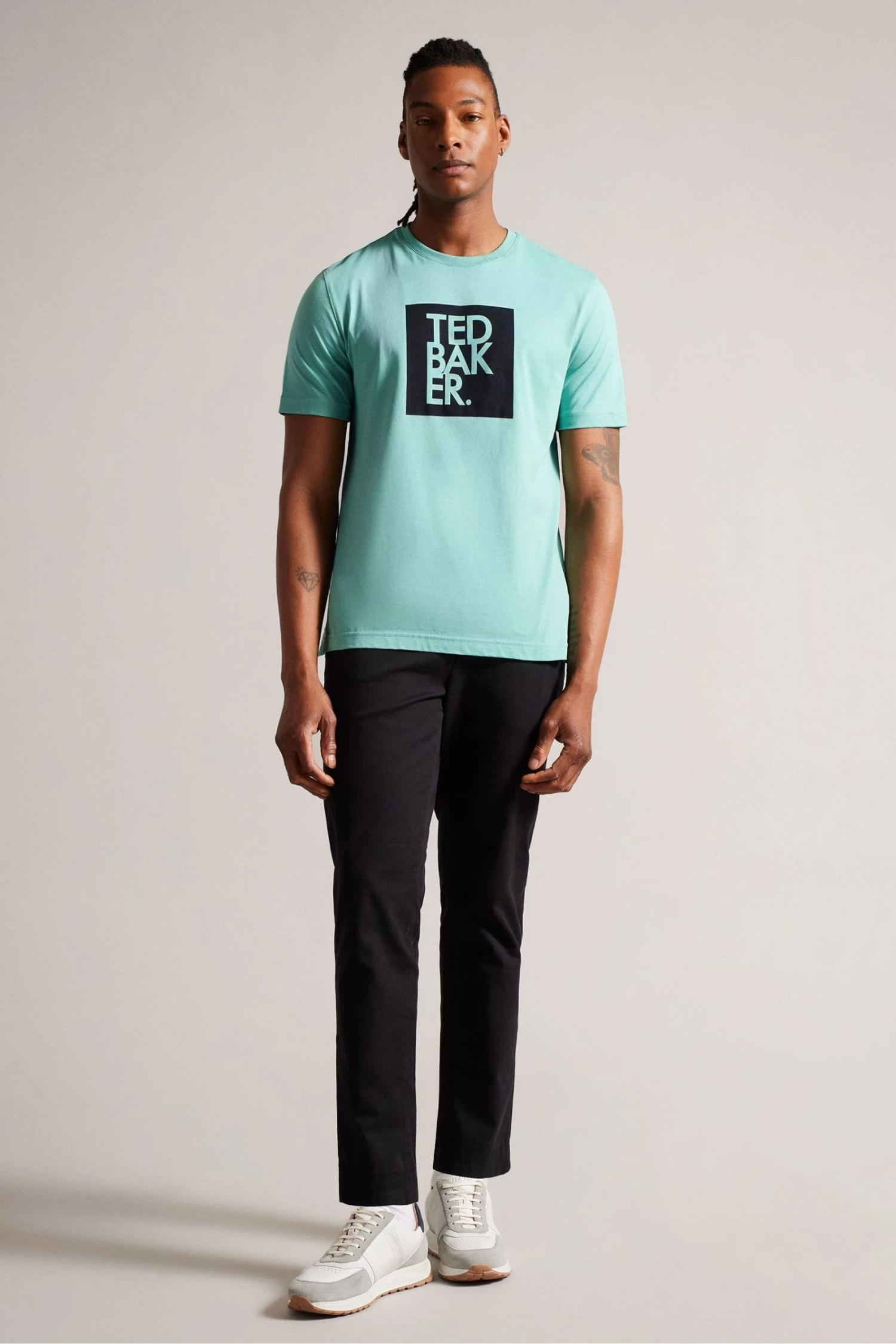 Ted Baker Green Rofata Short Sleeved Square Branded T-Shirt