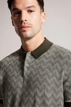 Ted Baker Green Waldun Short Sleeve Zig Zag Stitched Polo Shirt