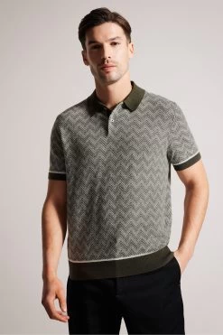 Ted Baker Green Waldun Short Sleeve Zig Zag Stitched Polo Shirt
