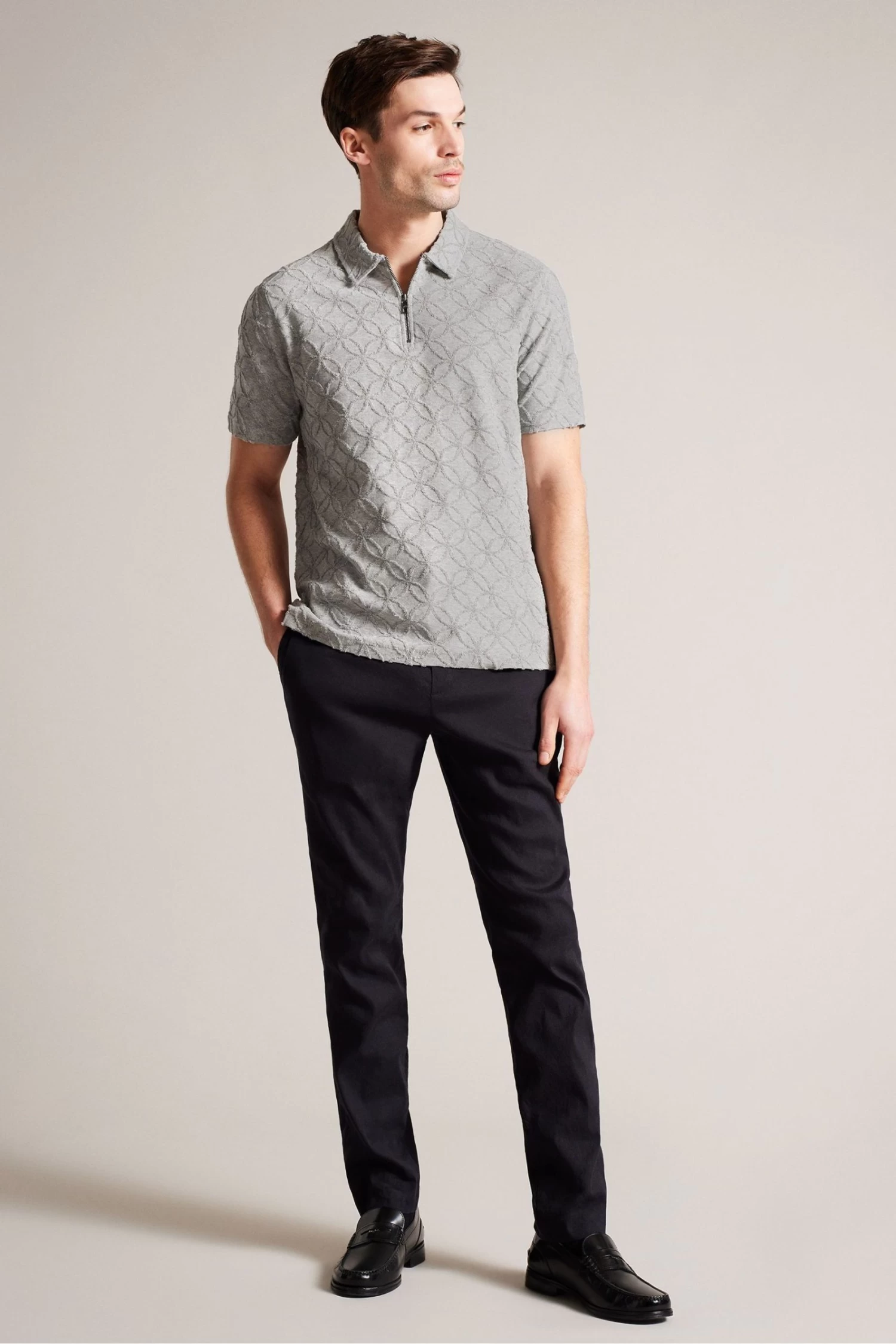 Ted Baker Grey Maroc Marl Short Sleeved Regular Zip Jacquard Polo