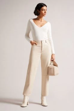 Ted Baker Ivory Cileste V Neck Slim Fit Knit Top
