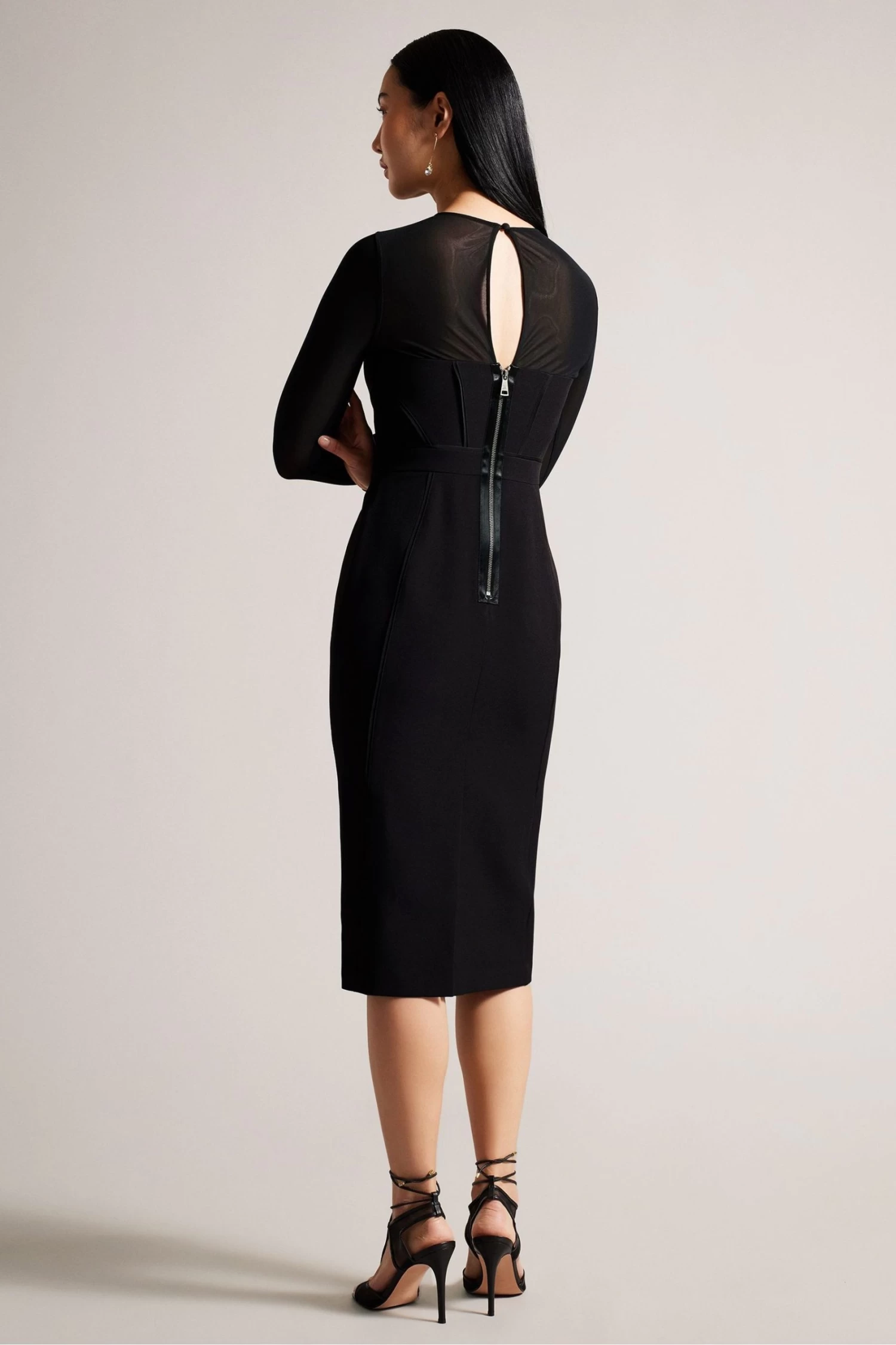 Ted Baker Ivylou Bodycon Black Midi Dress With Sheer Panels