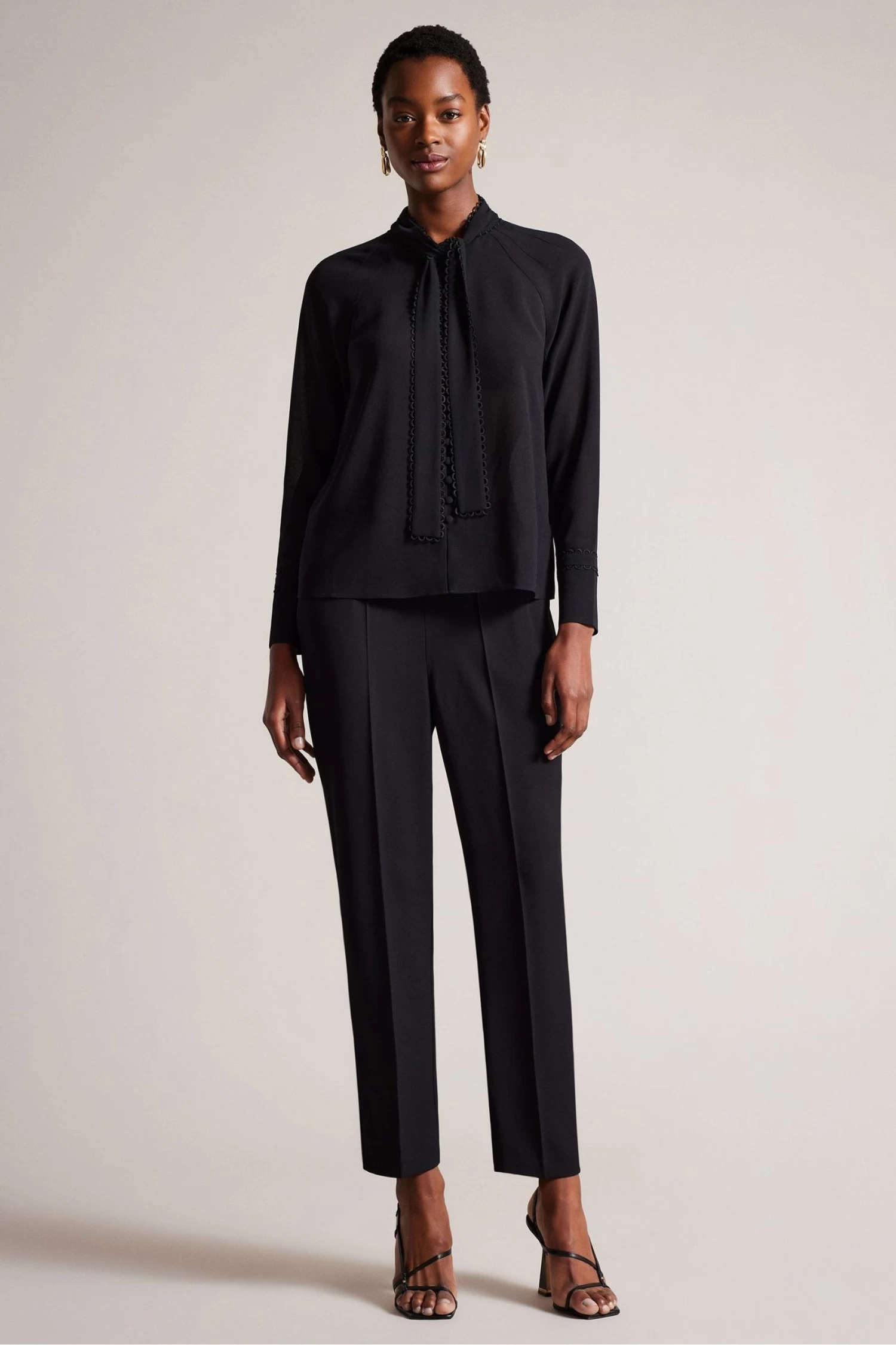 Ted Baker Julinaa Black Rouleaux Trim Detail Blouse