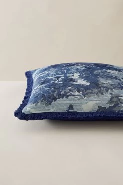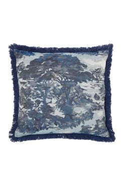 Coordinate with the woven jacquard landscape cushion in navy, trimmed with soft fringe detailing.