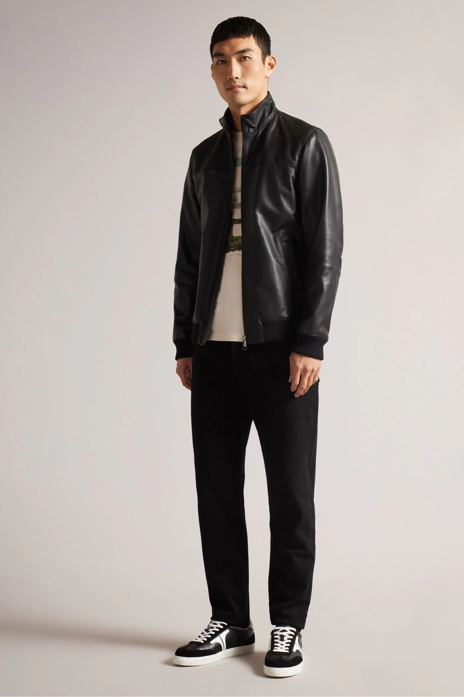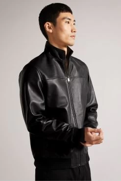 Ted Baker Leadon Black Leather Bomber Jacket