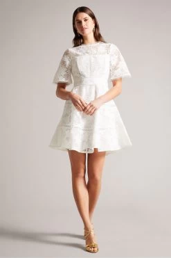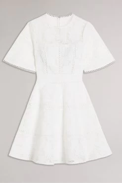 Ted Baker Lydiiha Fit And Flare Tiered Lace White Dress