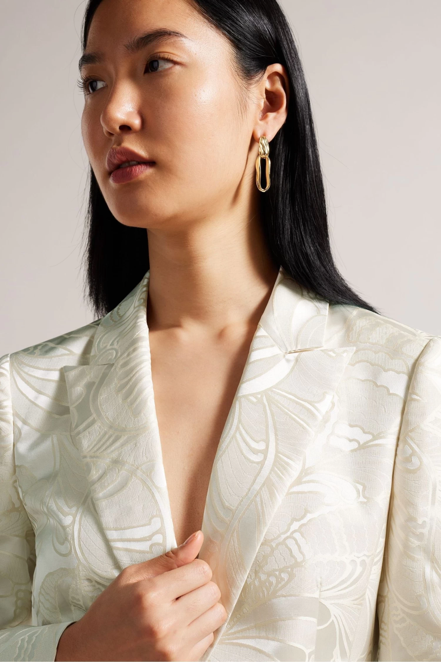 Ted Baker Majia Natural Single Breasted Slim Fit Jacquard Jacket