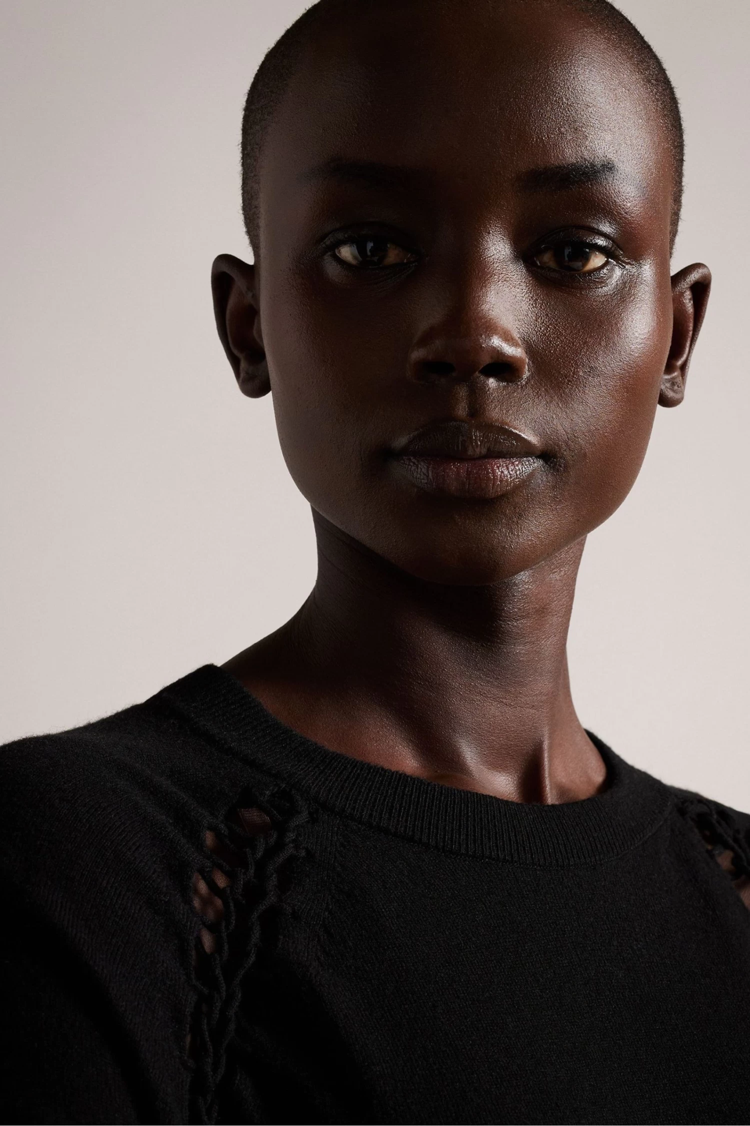 There s a reason why everyone loves a great knit. In a wool and cashmere blend, MARINY is soft and comfortable against your skin. Braided sleeve inserts offer a sophisticated look that feels as great as it looks.