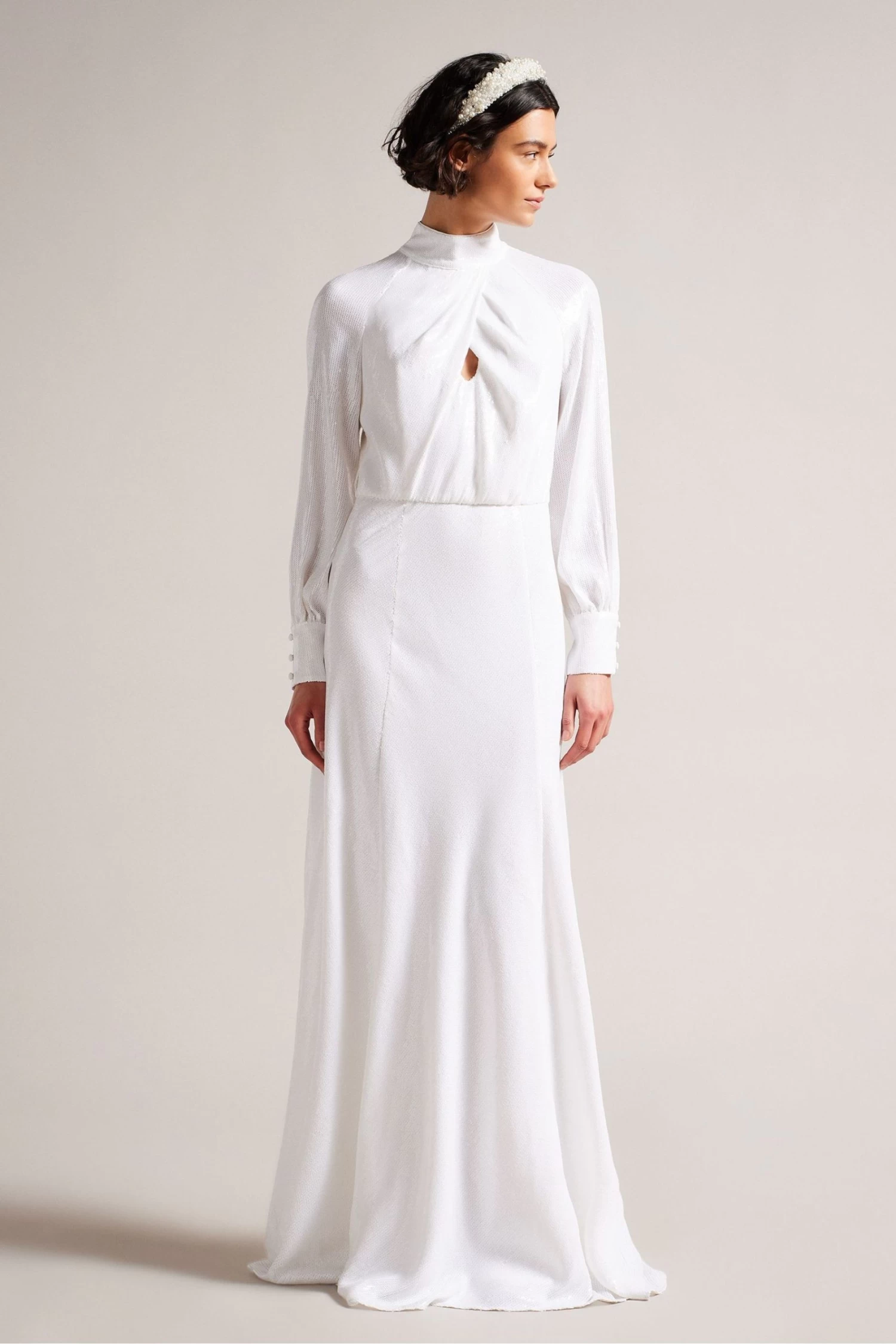 Ted Baker Mayrose White Maxi Dress With Blouson Sleeves