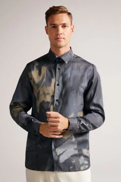 Ted Baker Mordun Grey Long Sleeve Abstract Butterfly Print Shirt