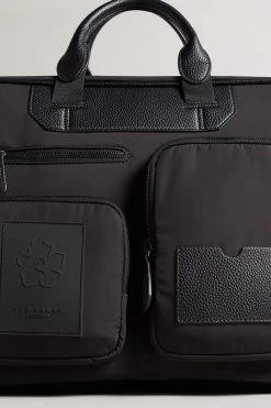 Bag yourself a stylish Mover document bag for your workwear wardrobe. In a black colourway with zipped toe opening, four exterior zip pockets and interior laptop pocket. Complete with crossbody strap, carry handle, adjustable and removable straps, and Ted Baker branding. H: 30cm D: 11cm W: 39cm.