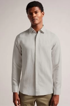 Ted Baker Natural Jasperr Long Sleeved Cotton Linen Shirt