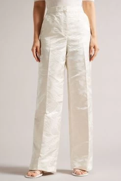 Ted Baker Natural Majiat Wide Leg Jacquard Trousers