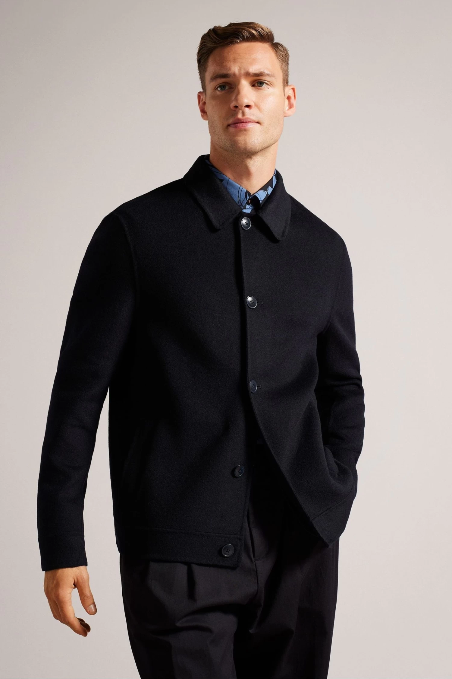 Ted Baker Navy Blue Sharpow Wool Collared Jacket