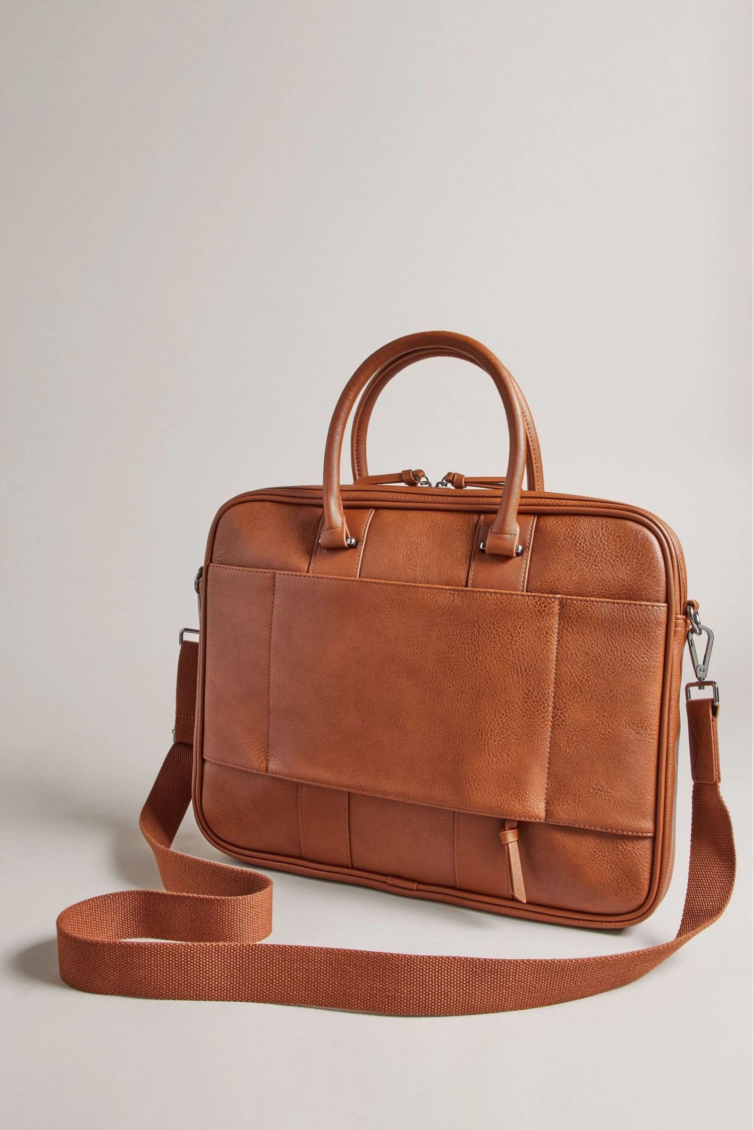 Ted Baker Nevver Tan Striped Pu Document Brown Bag