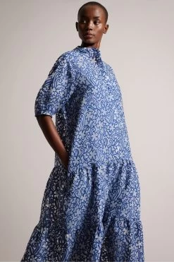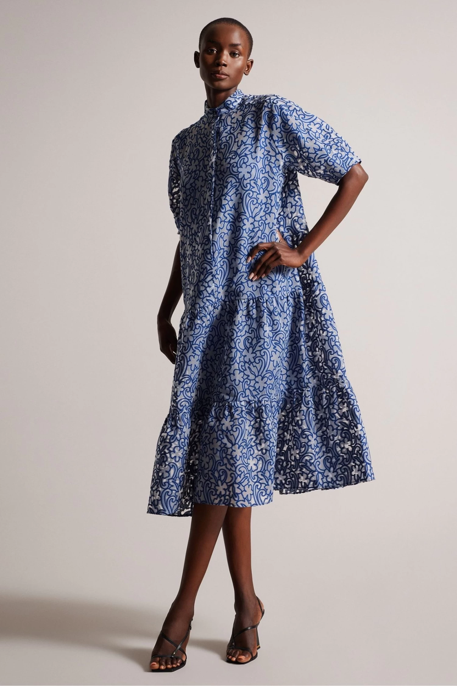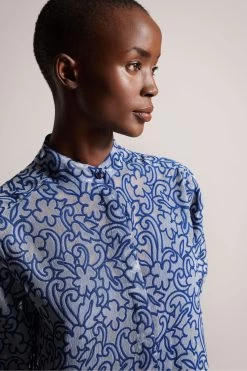 Ted Baker Oversized Blue Camriyn Brt Shirt Dress With Puff Sleeve