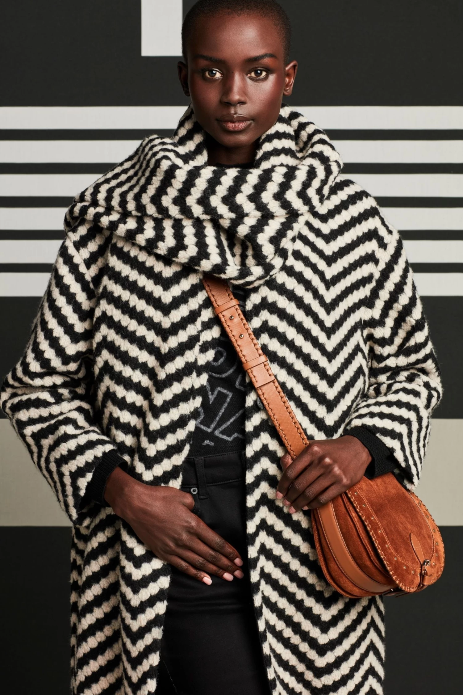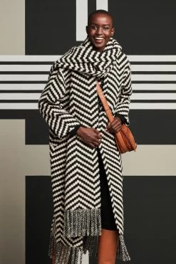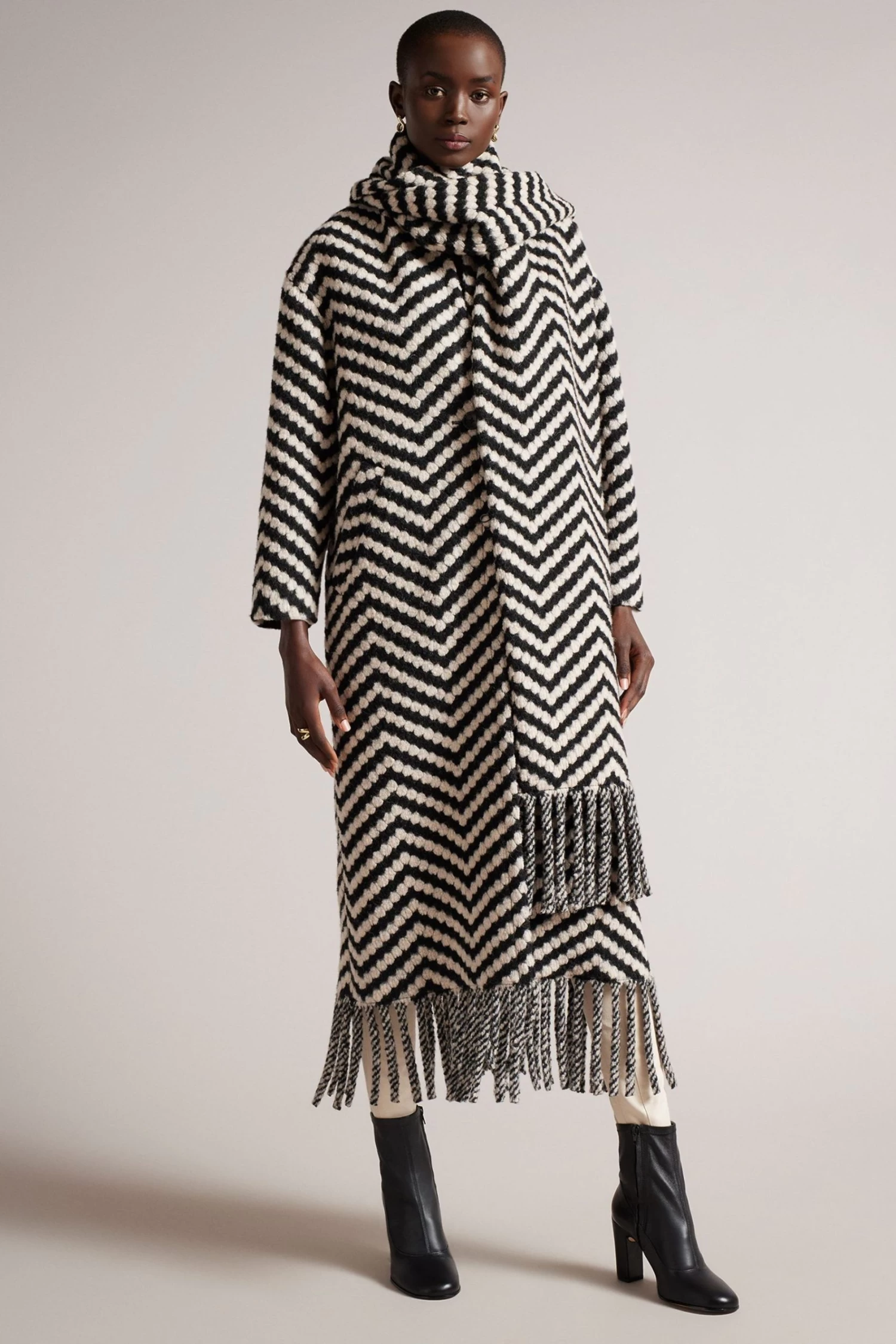 Ted Baker Oversized Jilliya Black Twill Knit Scarf Coat