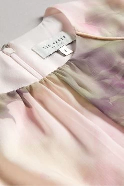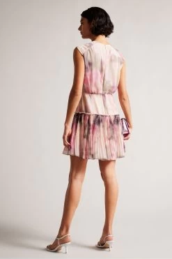 Ted Baker Pink Amorita Coral Blurred Floral Waisted Sleeveless Mini Dress